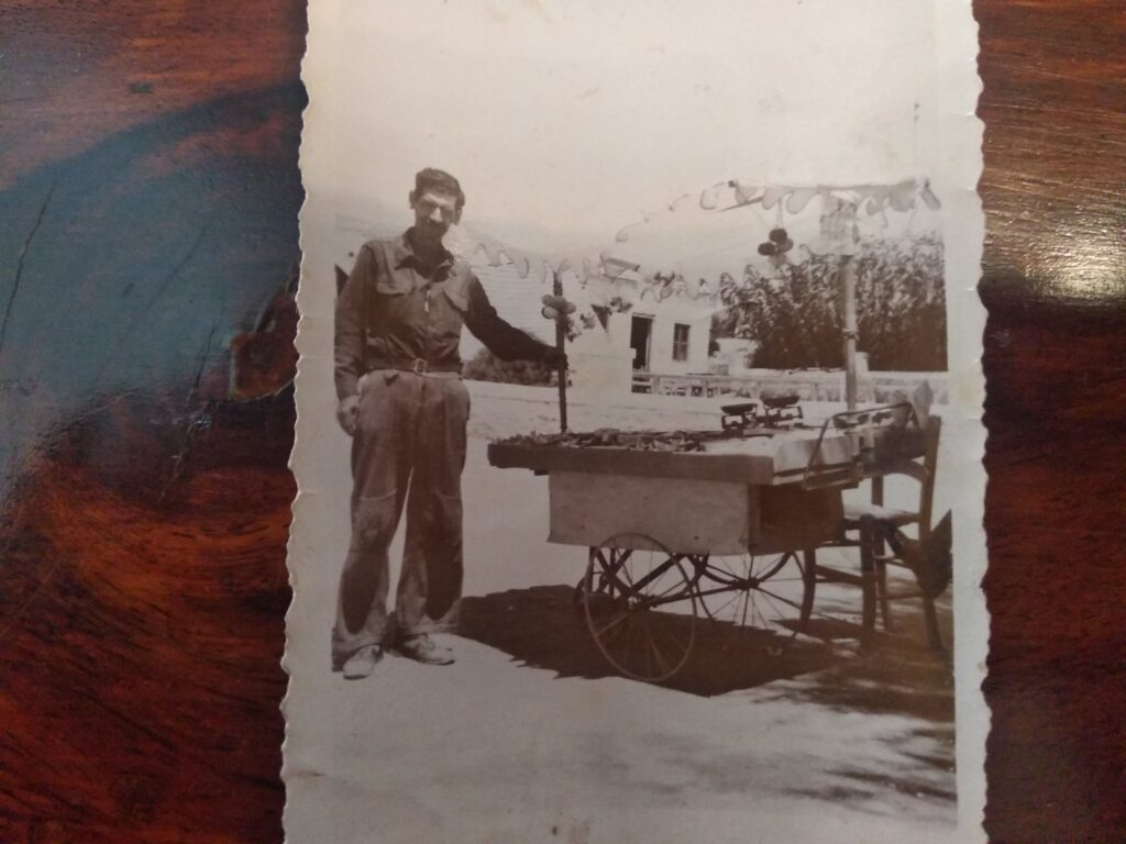 Images of street vendors like the ones described earlier were an essential part of Volos’ refugee identity. Immortalised by the camera lens, these images have been ingrained in the memories of all the people who grew up in these neighbourhoods, even if they were third-generation refugees. Vendors carrying improvised carts would wander the neighbourhoods selling fish, vegetables, mastic, candy, bread rolls, but also socks, hair pins and anything else that might provide a living income. Prodromos Christoforidis, a third-generation refugee who was born and raised in the Iolkos settlement during the 1960s and ‘70s, remembers the most distinctive figure in the Iolkos settlement: Uncle Andreas, the mastic seller.