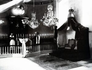 Λιγοστές φωτογραφικές απεικονίσεις από την κοινωνική δραστηριότητά των Χανιωτών εβραίων διασώζονται. Η πρώτη φωτογραφία, μοναδικό τεκμήριο που εντοπίστηκε πριν κάποια χρόνια στο αρχείο του Φιλολογικού Συνδέσμου Χανίων «Ο Χρυσόστομος», απεικονίζει το εσωτερικό της Συναγωγής Μπεθ Σαλόμ, της μεγάλης συναγωγής που βομβαρδίστηκε το 1941 και δεν αποκαταστάθηκε έκτοτε. Η συγκυρία είναι σημαντική, μιας και η συναγωγή είναι στολισμένη για να υποδεχτεί τον βασιλιά Κωνσταντίνο, τον Δεκέμβριο του 1913, για τον εορτασμό της Ένωσης της Κρήτης με την Ελλάδα. Στη συναγωγή φωτογραφίζονται ο τελευταίος αρχιραβίνος Κρήτης, Αβραάμ Εβλαγόν κι ο μετέπειτα ραβίνος Χανίων, Ηλίας Όσμος. Οι πολυέλαιοι είναι στολισμένοι με λευκές κορδέλες. Στο πάτωμα διακρίνονται χαλιά προσευχής των μουσουλμάνων, τα οποία πιθανώς χρησιμοποιήθηκαν για τον στολισμό της συναγωγής. Ο θρόνος έχει στην κορυφή το σύμβολο του στέμματος και του σταυρού, και εκατέρωθεν το γράμμα ‘Κ’, φανερώνοντας ότι προοριζόταν για τον βασιλιά. Η εβραϊκή κοινότητα συμμετείχε, έτσι, στους εορτασμούς για την ενσωμάτωση της Κρήτης στην Ελλάδα.