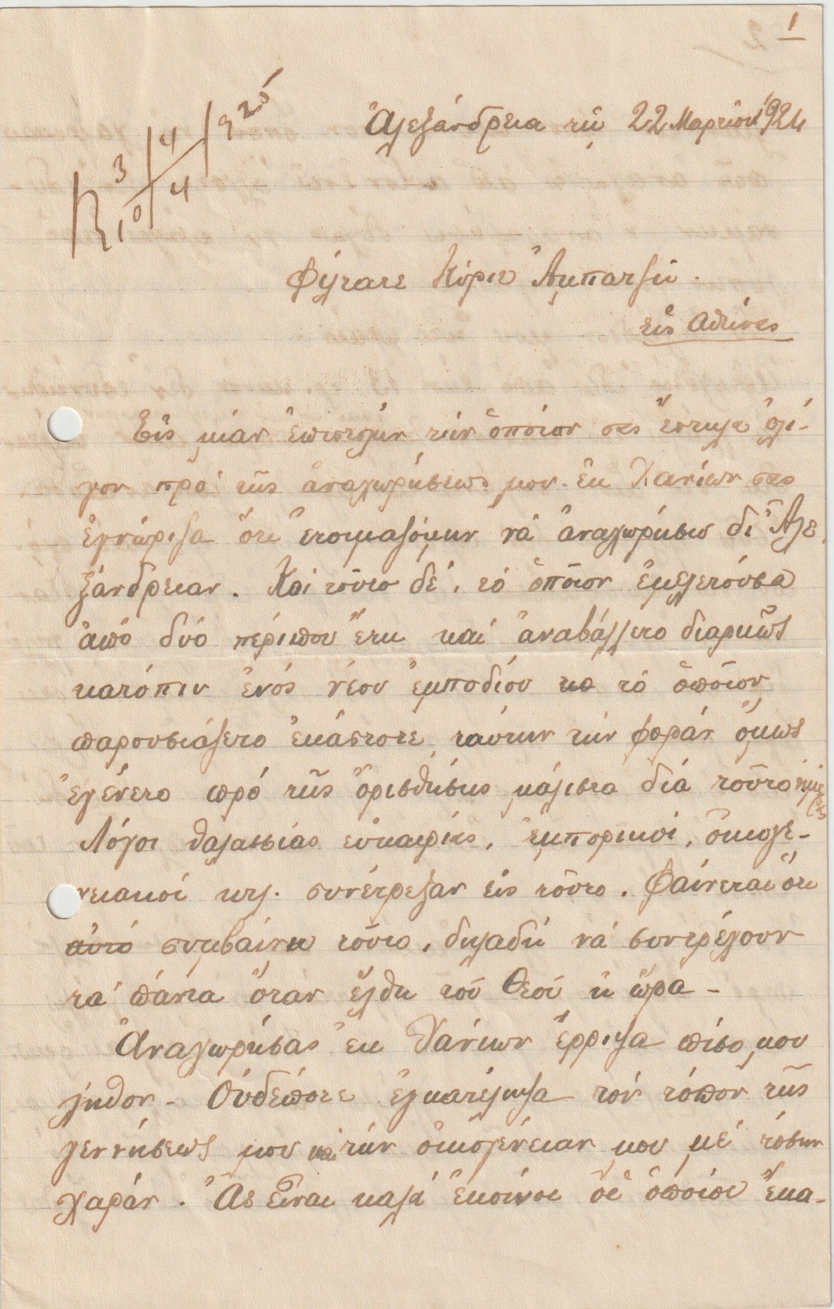 «[…] Ανησυχώ να μάθω τι γίνεται με την υπόθεσιν της υπηκοότητός σας. Διατί δεν μου αποστέλλετε τα πιστοποιητικά σας να απαντήσωμεν του Αγκιάχ επί τέλους. Άμα τα λάβητε γράψετε μου υπό ποίον πνεύμα θέλετε να του απαντήσω και εγώ το κάνω συμφώνως προς την επιθυμίαν σας», έγραφε σε επιστολή του προς τον Ιπποκράτη ο Χασάν Βέης λίγους μήνες αργότερα (επιστολή 22/03/1925). Ο Χασάν Βέης ήταν εκείνη την περίοδο ασκούμενος δικηγόρος στην Αλεξάνδρεια, και προσφερόταν να εξυπηρετήσει τον Ιπποκράτη σε νομικά ζητήματα.