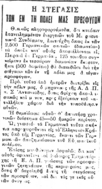 Η εγκατάσταση των μικρασιατών προσφύγων στο Ξηρόκαμπο, 1924-1930. Β. τα Τσιμεντένια, τα Γερμανικά και τα Πέτρινα οικήματα