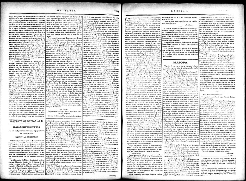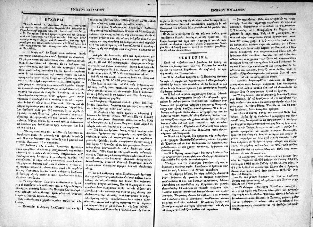 Άρθρο σχετικά με τη σταδιακή «ερήμωση» της Θεσσαλίας εξαιτίας της αποχώρησης των Θεσσαλών μουσουλμάνων. Πηγή: εφημερίδα Εθνικόν Μεγαλείον, 18 Αυγούστου 1884
