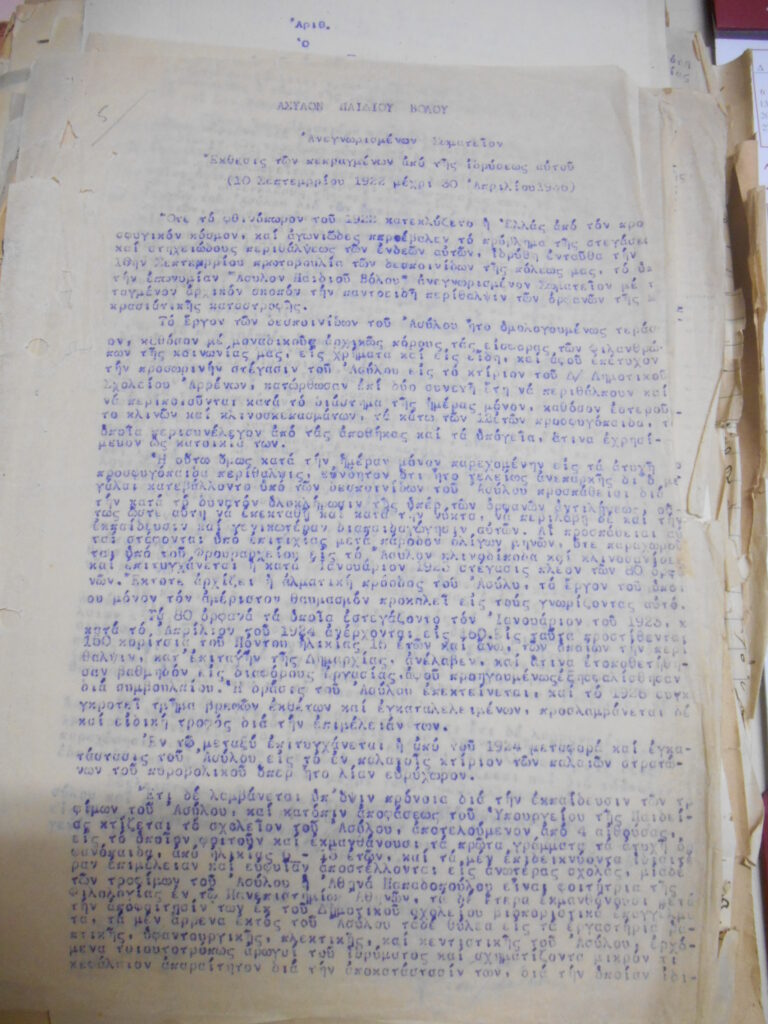Γ.Α.Κ. Μαγνησίας, Αρχείο Ασύλου Παιδιού Βόλου, φάκ. 2057, Έκθεσις των πεπραγμένων από της ιδρύσεως αυτού (22 Σεπτεμβρίου 1922 μέχρι 30 Απριλίου 1936.