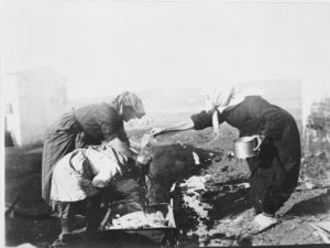 Στη φωτογραφία που παρουσιάζεται εδώ και βρέθηκε στη Βιβλιοθήκη του Κογκρέσου δύο γυναίκες βοηθούν ένα κορίτσι να λουστεί. Η φωτογραφία προέρχεται από τη συλλογή φωτογραφιών του Αμερικανικού Ερυθρού Σταυρού ο οποίος συμμετείχε στο έργο της περίθαλψης και της σίτισης των προσφύγων της Καλαμαριάς. Η τεκμηρίωση αναφέρει ότι πολλά κορίτσια και γυναίκες έσπευδαν να λουστούν για να αποφύγουν το υποχρεωτικό κούρεμα. Πολλές που δεν το απέφυγαν κράτησαν τις κομμένες τους κοτσίδες.
