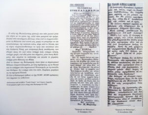 Ιφιγένεια Χρυσοχόου, Ξεριζωμένη γενιά, Το χρονικό της προσφυγιάς στη Θεσσαλονίκη, Φιλιππότης, δ΄εκδ., Αθήνα 1988, σ.117-121 ανθολογημένο στο Μια πόλη στη λογοτεχνία, Θεσσαλονίκη, επιλογή κειμένων Σάκης Σερέφας, φωτογραφίες Άρις Γεωργίου, Καίλο Νόλλας, Μεταίχμιο, Αθήνα 2005, σ. 46-50